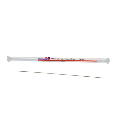Alldente Elite forrasztó szál keményforrasztáshoz, nemesfém-ötvözetek égetés előtti forrasztásához, valamint króm-kobalt ötvözetek forrasztásához. Kiszerelés: 10g (7 szál)