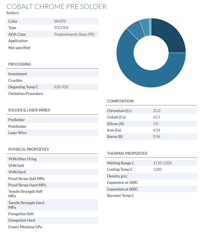 Nikkelmentes kobalt-króm forrasztó, fémek és kerámiázható fogtechnikai ötvözetekhez egyaránt alkalmazható.